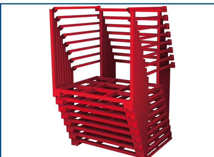 巧固架又称堆垛架规格统一,容量固定,存放货物一目了然,易于仓库的清点,货架可互相堆高,实现立体化存储,很容易形成立体存储的能力,而不需要借助于货架等设备。适用于在如租赁仓库,低矮的老式仓库或车间暂存区等不适合投资仓库的区域。