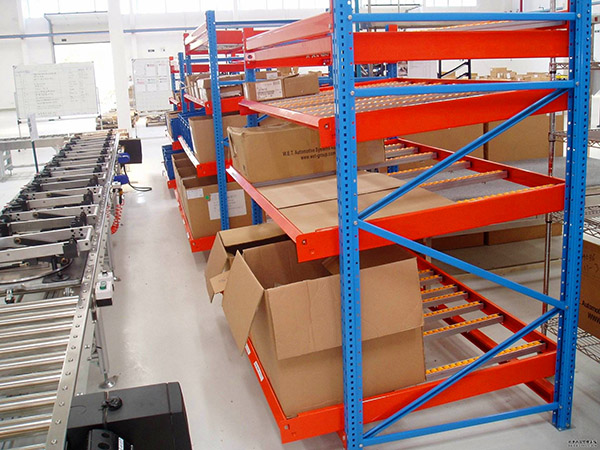 流利式货架又称滑移式货架,采用辊轮铝合金,钣金等流利条,利用货物台架的自重,从一边通道存货,另一边通道取货实现先进先出,存储方便,以及一次补货多次取货。流利架存储效率高,适合大量货物的短期存放和拣选。可配电子标签,实现货物的轻松管理,常用滑动容器有周转箱,零件盒及纸箱,适合大量货物和短期存放和拣选。适合大量货物的短期存放和拣选。广泛应用于配送中心、装配车间以及出货频率较高的仓库。